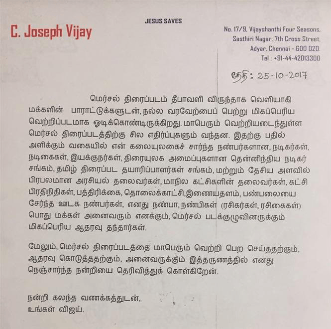 Christian Avatar when he called himself ‘Joseph Vijay’ with letter head proclaiming ‘Jesus Saves’.